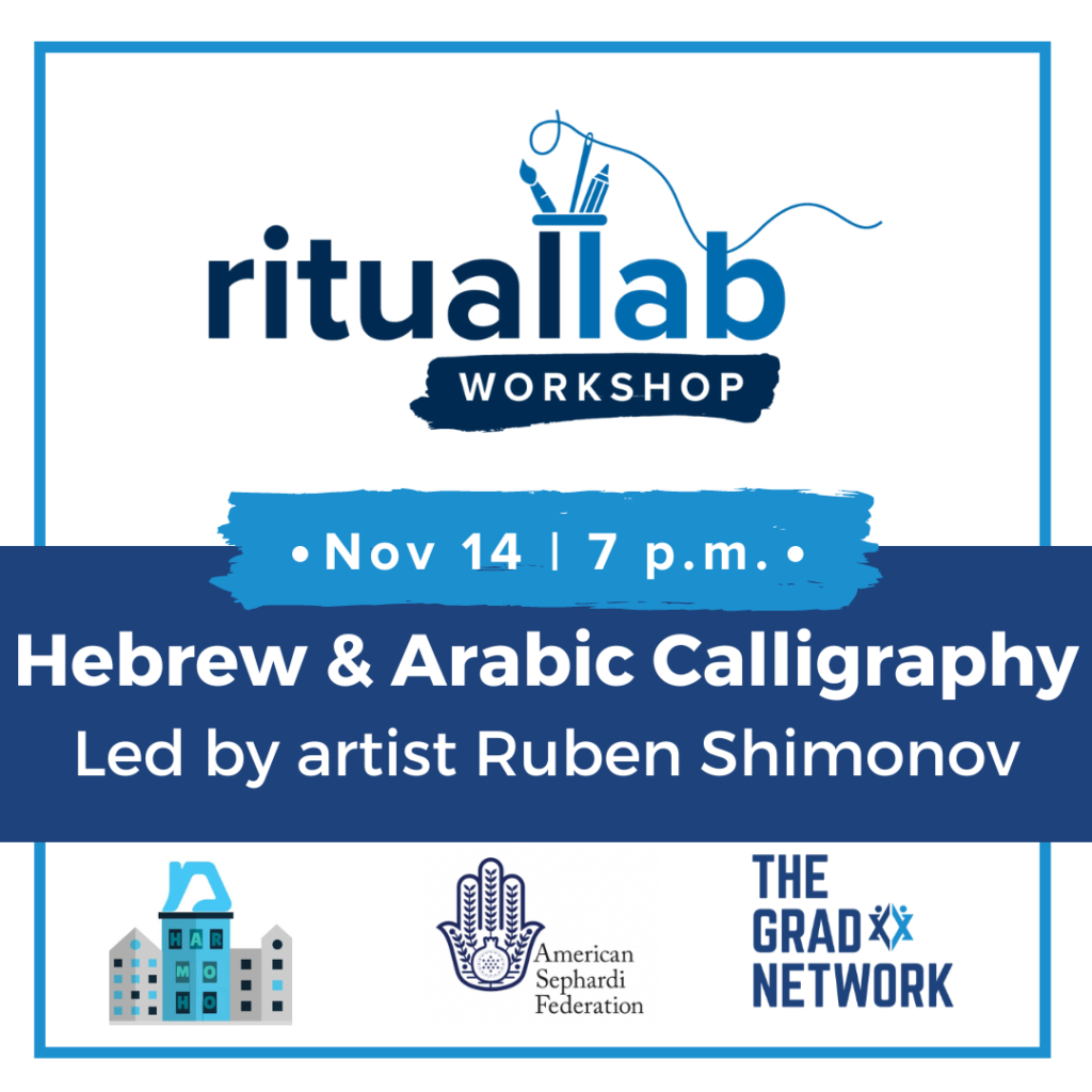 Join us as we dive into the rich visual worlds of Arabic, Hebrew and Persian calligraphy. Through historical, spiritual, linguistic and artistic lenses, we will discover the parallels between these languages. Educator, community builder, and artist Ruben Shimonov will also take us on an exploratory journey of his own multilingual calligraphy—sharing the ways he has used his art to celebrate the cultural diversity of the Greater Sephardi world.